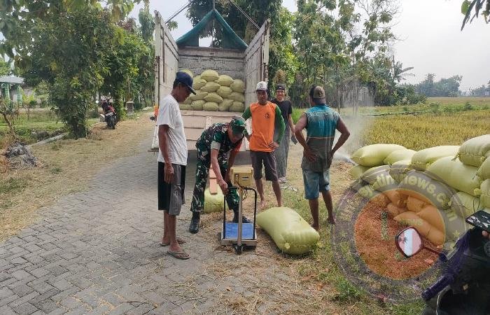 Dukung Swasembada Pangan, Babinsa Tambakromo Koramil 0805/04 Padas Pendampingan Giat Sergap Bulog di wilayah Ngawi