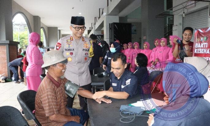 Ratusan warga dan sejumlah komunitas secara bergiliran melakukan pemeriksaan kesehatan yang digelar kepolisian setempat.