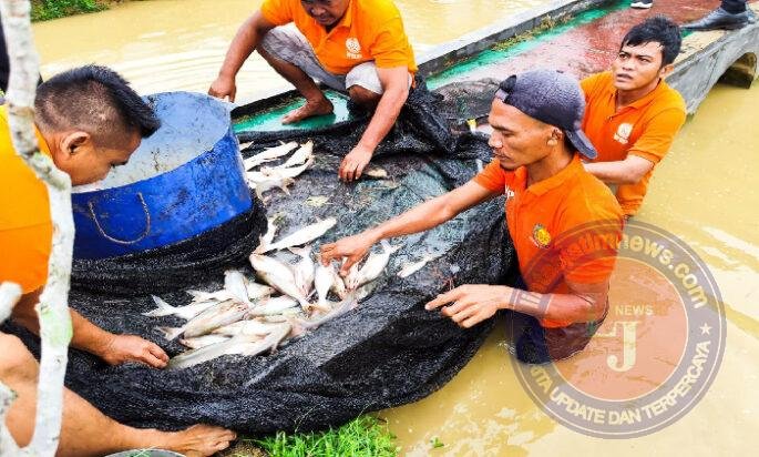 INDRAGIRIHULU lintasjatimnews – Rumah Tahanan Negara (Rutan) Kelas IIB Rengat, Kabupaten Indragiri Hulu (Inhu), Riau bersama dengan Cv. Petaho melakukan panen kangkung dan ikan air tawar yang dibudidayakan warga binaan pada area blok hunian dan brandgang.(12/3/25).