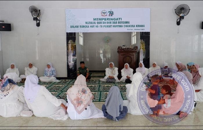 Peringatan Nuzulul Quran yang dirangkaikan dengan acara do’a bersama memperingati hari Ulang tahun ke-79 Persit KCK tahun 2025 tersebut diikuti oleh Ketua Persit KCK Cab. XV Dim Pacitan Ibu Ajeng Musahirul, para pengurus, serta ibu persit anggota.