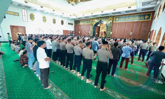 Sholat gaib dilaksanakan di Masjid Arif Nurul Huda, Mapolda Jatim, seusai shalat dzuhur,pada Selasa (18/3/2025).