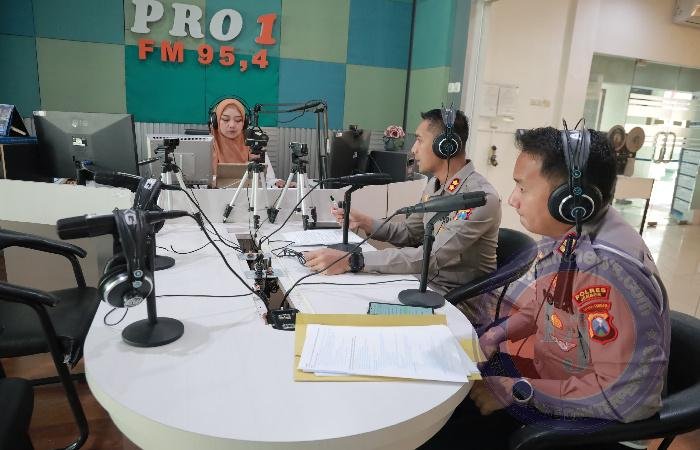 Sebagai bagian dari sosialisasi kepada publik, Kepala Kepolisian Resor (Kapolres) Jember, AKBP Bayu Pratama Gubunagi, didampingi Kasat Lantas AKP Bernadus Bagas Simamarta, berpartisipasi dalam dialog interaktif yang diselenggarakan oleh Radio Republik Indonesia (RRI) Jember di Studio 1, Selasa (18/3/2025)
