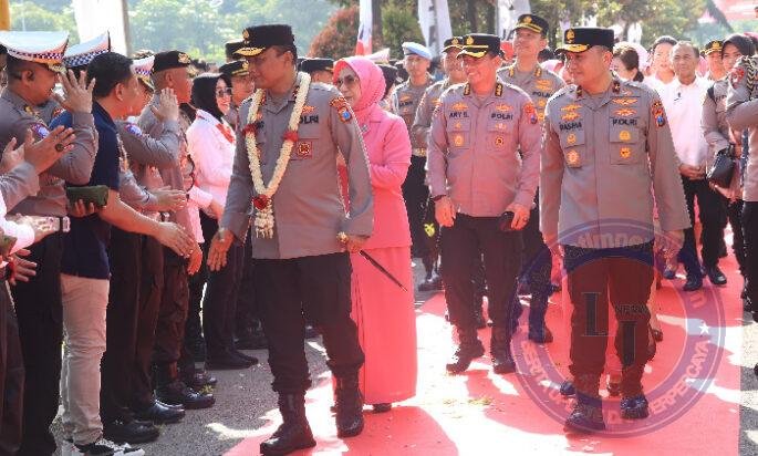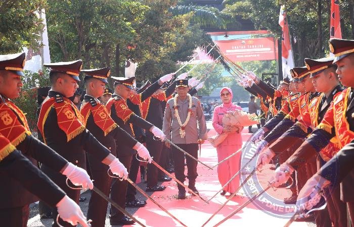 SURABAYA lintasjatimnews – Jajaran Polda Jawa Timur menggelar tradisi pedang pora dalam menyambut kedatangan Kapolda Jatim yang baru, yakni Irjen Pol Nanang Avianto di halaman Mapolda Jatim, diikuti seluruh Pejabat Utama (PJU) Polda Jatim, Kapolres/ta jajaran Polda Jatim Rabu (19/3/2025).