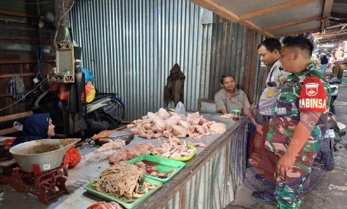 SURAKARTA lintasjatimnews – Babinsa Kelurahan Danukusuman Koramil 03/Serengan Kodim Surakarta Serda S. M Tito melaksanakan pemantauan langsung terkait perkembangan harga dan ketersediaan sembako menjelang lebaran Idul Fitri di Pasar Tradisional Harjodaksino Jln. Yos Sudarso Danukusuman Serengan Kota Surakarta pukul 10.00 Wib (Minggu, 23/03/2025).