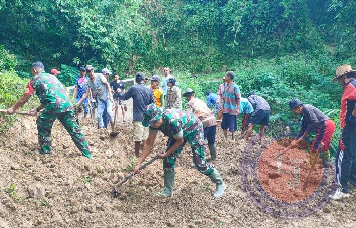 Disela-sela kegiatan tersebut Babinsa Sertu Agus Wilopo mengatakan, longsor terjadi akibat hujan deras dengan intensitas yang cukup tinggi mengakibatkan tanah longsor menutupi akses jalan.“Dengan alat seadanya, kami bersama masyarakat bergotong-royong membersihkan material longsor berupa tanah menutupi jalan,” ungkapnya.