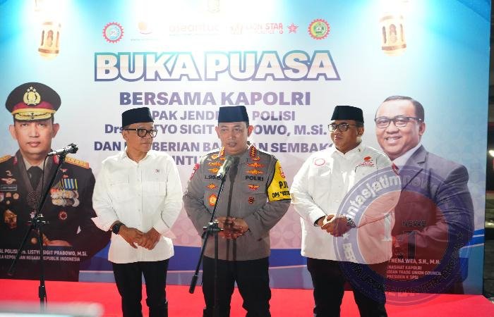 JAKARTA lintasjatimnews – Kapolri Jenderal Polisi Drs. Listyo Sigit Prabowo menghadiri kegiatan buka puasa bersama elemen buruh di PT Cahaya Perdana Plastic (CPP) Lion Star di Jakarta Utara (Jakut). Dalam acara tersebut, Jenderal Sigit juga menyerahkan paket sembako.