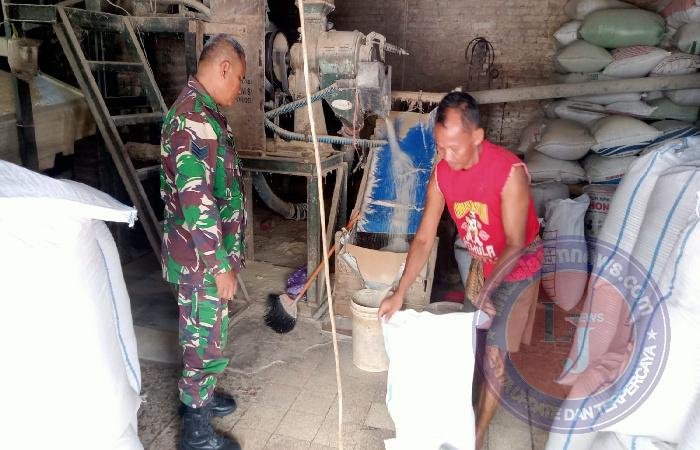 “ Salah satu kegiatan yang kami lakukan hari ini yaitu mengecek ketersediaan gabah dan beras yang ada di penggilingan padi di Desa Karanggebang yang memang selama ini sudah bekerjsama dengan Bulog Ponorogo, “ kata Serka Agus Sarianto.