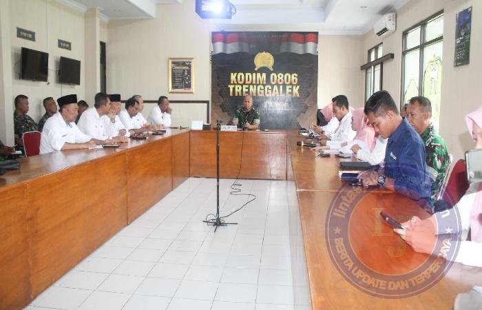 TRENGGALEK lintasjatimnews – Komando Distrik Militer (Kodim) 0806/Trenggalek terus menunjukkan komitmennya dalam meningkatkan kesejahteraan masyarakat dengan menggelar Rapat Koordinasi (Rakor) untuk mematangkan kesiapan program Makan Bergizi Gratis (MBG). Bertempat di ruang rapat Makodim 0806/Trenggalek, rakor ini dipimpin langsung oleh Dandim 0806/Trenggalek, Letkol Czi Yudo Aji Susanto, S.Sos., M.A., dan dihadiri oleh berbagai pemangku kepentingan, termasuk Asisten I Daerah Kabupaten Trenggalek, Saeroni, M.M.R.S., serta kepala dinas dan instansi terkait, Rabu (26/3/2025).