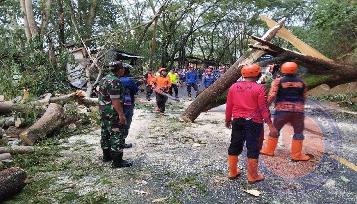 TRENGGALEK lintasjatimnews – Cuaca ekstrem berupa hujan deras disertai angin kencang terus melanda Kabupaten Trenggalek, menyebabkan pohon sengon buto berukuran besar tumbang dan menutup total badan jalan di Jalur Nasional Trenggalek-Ponorogo, Kecamatan Tugu, Rabu (2/4/2025). Akibatnya, akses vital yang menghubungkan antar kabupaten ini lumpuh total, menghambat mobilitas masyarakat dan berpotensi membahayakan pengguna jalan.