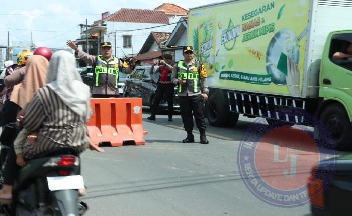 Meski dibawah teriknya sinar matahari yang menyengat, tidak membuat patah arang jajaran kepolisian berjibaku melakukan penguraian lalu lintas untuk memastikan laju kendaraan dari dua arah tetap berjalan normal.