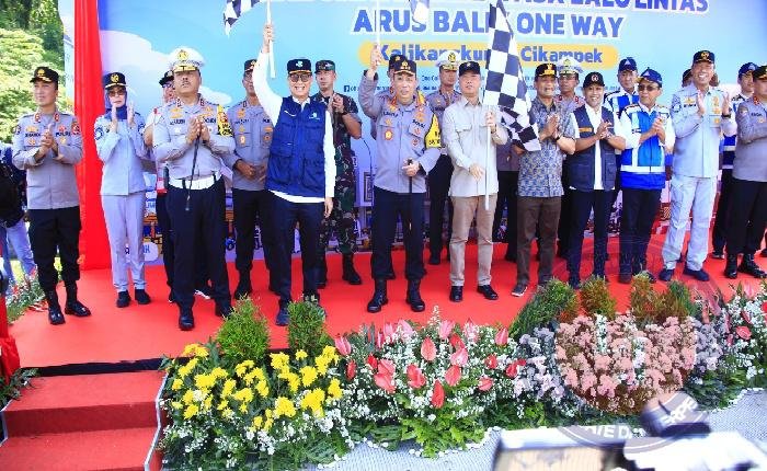 Setelah itu, Kapolri memimpin langsung flag off one way nasional tersebut. Terlihat Kakorlantas Irjen Agus Suryonugroho mendampingi langsung di lokasi.