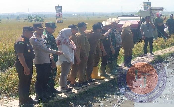Dandim Ngawi Bersama Forkopimda Jatim Panen Raya Padi Serentak di 14 Provinsi Bersama Presiden Prabowo
