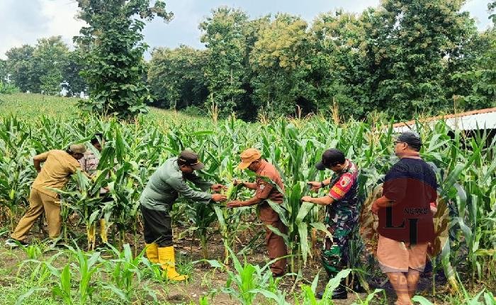 Serda Turmuji Babinsa Koramil Panceng ikut hadir pada giat pengecekan tanaman jagung.