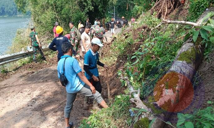 Jalan Wisata Ngebel Tertutup Tanah Longsor, TNI-Polri dan Unsur Terkait di Ponorogo Kerja Bakti