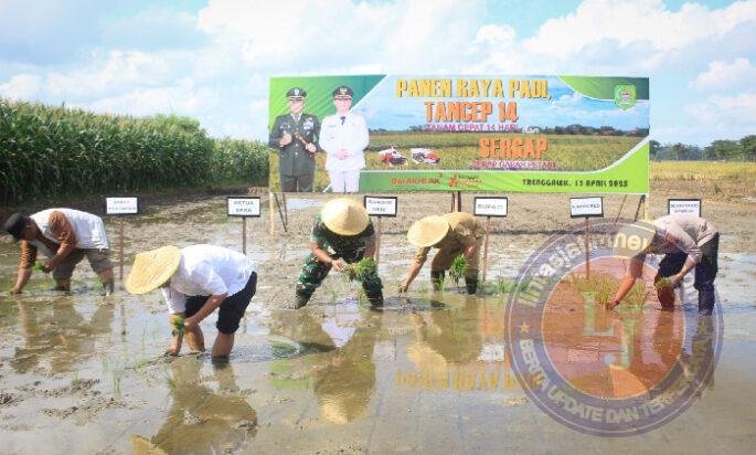 Setelah panen, kegiatan dilanjutkan dengan implementasi program Tancep 14, yaitu percepatan tanam ulang padi 14 hari setelah panen. Program ini menjadi solusi strategis untuk menjaga kontinuitas produksi beras nasional, terutama di tengah ancaman perubahan iklim dan gejolak pasar global.