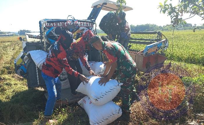 BOYOLALI lintasjatimnews – Dalam upaya mendukung program penyerapan gabah petani (Sergap) oleh Bulog, Empat (4) Babinsa Koramil 08/ Banyudono Kodim 0724/Boyolali yang dipimpin Serma Widi H melaksanakan pendampingan penyerapan gabah oleh Bulog di sawah milik Bapak Tri Wibowo, Pak Yatno, Pak diyo, Pak santoso, anggota Kelompok Tani Rahayu Desa Trayu Kecamatan Banyudono Kabupaten Boyolali. Selasa ( 29/04/25)