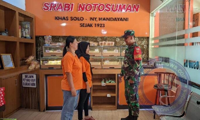 SURAKARTA lintasjatimnews – Babinsa Kelurahan Kratonan Koramil 03/Serengan Kodim 0735/Surakarta Koptu Resbiyanto pada pukul 08.45 Wib melaksanakan Komunikasi sosial (Kosmos) dengan Pelaku usaha Kuliner Khas Solo Srabi Notosuman Ny. Handayani di Jl. Moh. Yamin No.51 Kel.Kratonan-Kec.Serengan, Kota Surakarta. Kamis (01 Mei 2025).