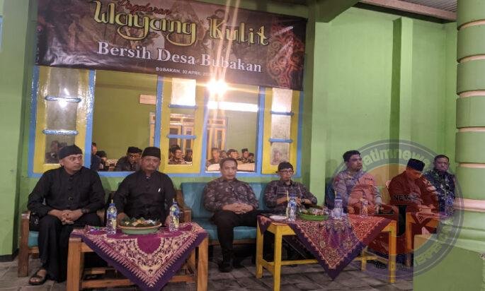 PACITAN lintasjatimnews – Upaya dalam melestarikan Budaya Lokal dengan pertunjukan tradisional di Kabupaten Pacitan, Danramil 0801/08 Tulakan di wakili Serda Ryan swantiko hadir pada acara pagelaran wayang kulit semalam suntuk dalam rangka Bersih Desa, bertempat Balai Desa Bubakan, Kecamatan Tulakan dimulai pada hari rabu (30/4)malam, Pagelaran wayang kulit ini menghadirkan Dalang Ki Heru cahyono dari Desa Bubakan dengan lakon Suryo Ndadari.