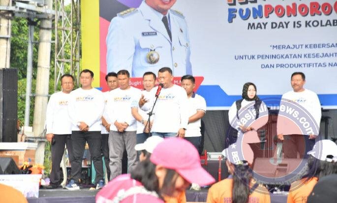PONOROGO lintasjatimnews – Komandan Kodim 0802/Ponorogo Letkol Inf Dwi Soerjono tadi pagi menghadiri acara peringatan May Day tahun 2025 bertempat di depan Paseban Aloon Aloon Kota / Kabupaten Ponorogo, Sabtu (03/05/25).