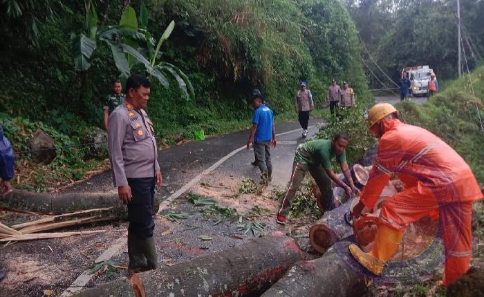 PONOROGO lintasjatimnews – Telah terjadi pohon sengon yang roboh / tumbang menutup atau menghalangi badan jalan di Dukuh Bentis Desa Wagir Lor Kecamatan Ngebel Kabupaten Ponorogo, Selasa (06/05/2025).