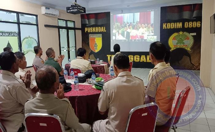 TRENGGALEK lintasjatimnews – Semangat kebersamaan dan nasionalisme terasa begitu kuat menyelimuti aula rapat Makodim 0806/Trenggalek, Selasa (6/5/2025) sore. Di tempat ini, Pejabat Sementara (Pjs) Komandan Kodim 0806/Trenggalek, Letkol Inf Edy Sunarko, S.Sos., bersama jajaran PPAD (Persatuan Purnawirawan TNI Angkatan Darat) dan PP Polri wilayah Trenggalek, mengikuti halalbihalal nasional virtual bersama Presiden Republik Indonesia, Prabowo Subianto.
