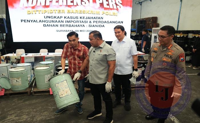 SURABAYA lintasjatimnews – Direktorat Tindak Pidana Tertentu (Dittipidter) Bareskrim Polri berhasil mengungkap kasus perdagangan ilegal sianida di dua lokasi, di Jawa Timur, yakni di Surabaya dan Pasuruan.