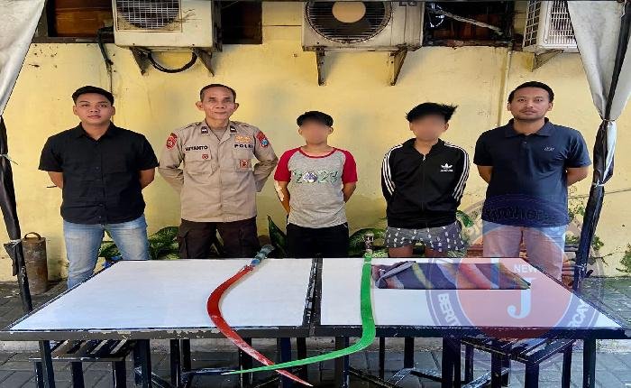 Polisipun bergerak cepat menuju lokasi dan mendapatkan Dua remaja dengan membawa senjata tajam.