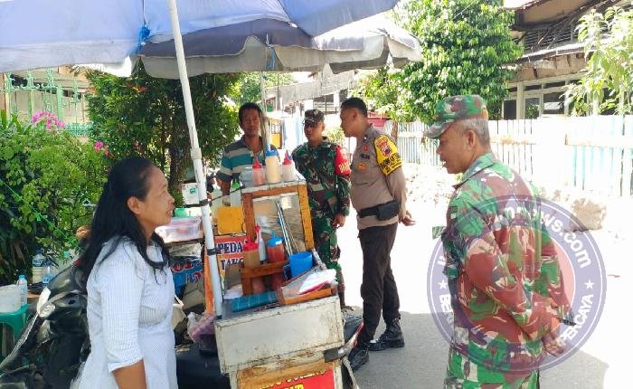 SURAKARTA lintasjatimnews – Babinsa Kelurahan Kratonan Koramil 03/Serengan Kodim 0735/Surakarta Serka Aris setyo Utomo dan Koptu Resbiyanto bersama Bhabinkamtibmas pada pukul 11.30 Wib sambangi Bpk. Agus S Pedagang Jajanan Anak yang mangkal di Depan Kantor Kelurahan Kratonan Jl. Pringgodani No. 32 Serengan Kota Surakarta, Sabtu (10 Mei 2025)