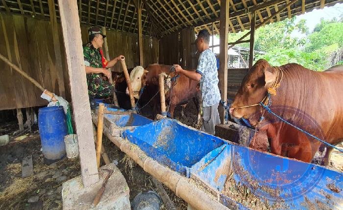 Dalam upaya tersebut Serka Munawar dan Serda Guntur menyambangi peternakan Sapi milik warga binaan dengan melakukan pendampingan serta pengecek perkembangan hewan ternak di kandang Sapi Bapak Huda, di Kp.Sukomulyo, Kelurahan Kadipiro, Kecamatan Banjarsari, Minggu (11/05/2025).