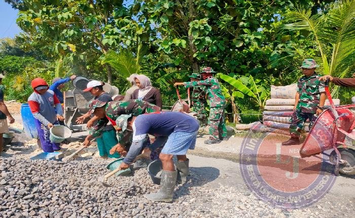 BOYOLALI lintasjatimnews – Demi suksesnya TNI Manunggal Membangun Desa (TMMD) Sengkuyung tahap II. Anggota Satgas TMMD Kodim 0724/Boyolali tetap melanjutkan pekerjaan pengecoran rabat beton jalan di Desa Kayen Kecamatan Juwangi Kabupaten Boyolali. Minggu (11/05/25)