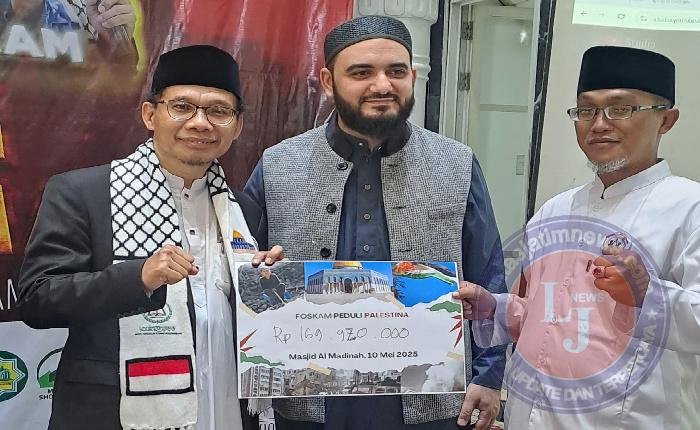 TANGERANG lintasjatimnews – Forum Silaturahmi & Komunikasi Antar Masjid-Mushalla (FOSKAM) se-Tangerang Raya “menghadiahi” 1 unit rumah senilai Rp. 515 Juta, plus dana sebesar Rp. 200 Juta kepada Masyarakat Gaza-Palestina. Semua hadiah tersebut merupakan hasil penggalangan dana yang terkumpul dalam aksi “Tabligh Akbar FOSKAM Peduli Palestina”, yang digelar Sabtu pagi, 10 Mei 2025, di Masjid Al Madinah-CBD, Ciledug, Tangerang Kota.