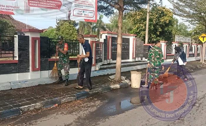 NGAWI lintasjatimnews – Anggota Posramil Gerih Kodim 0805/Ngawi bersama unsur Forkopimcam dan masyarakat melaksanakan kegiatan Jumat Bersih dengan membersihkan trotoar jalan depan Kecamatan Gerih, Jum’at (16/05/2025).