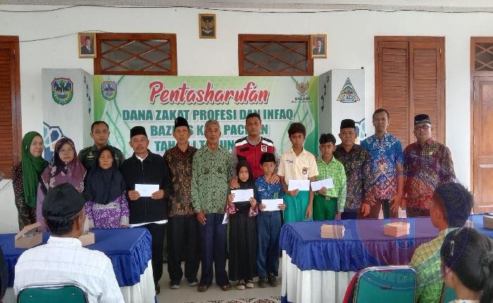 PACITAN lintasjatimnews – Danramil  0801/10 Punung di wakili Pelda Arianto menghadiri kegiatan Pentasharufan atau penyerahan Zakat secara simbolis oleh Badan Amil Zakat Nasional (BAZNAS) Pacitan tahap 1 tahun 2025 bertempat di Aula Kecamatan Punung, Jum’at (16/05/2025).