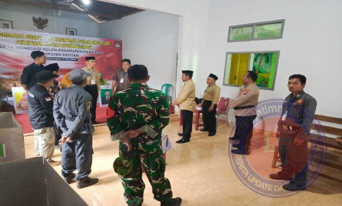 Dikatakan Danramil bahwa Koramil 0801/07 Ngadirojo mengerahkan 5 Personil Babinsa untuk monitoring dan lakukan pengamanan berlangsungnya proses pemungutan suara Pilkasun ini.