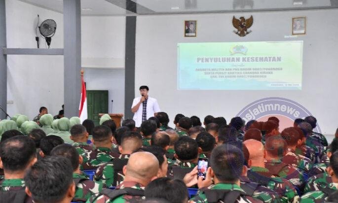 PONOROGO lintasjatimnews – Anggota Kodim 0802/Ponorogo dan Persit Kartika Chandra Kirana Cabang XVI Kodim Ponorogo hari ini mengikuti kegiatan penyuluhan kesehatan bertempat di Gedung Paraduta Kodim 0802/Ponorogo jalan Basuki Rahmat nomor 38 Kota / Kabupaten Ponorogo, Senin (19/05/2025).