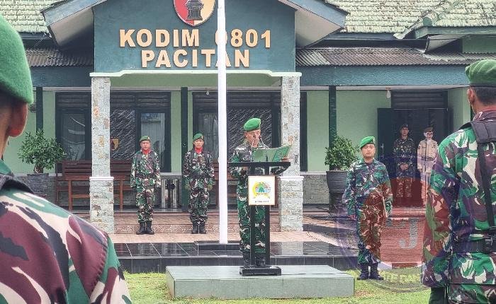 PACITAN lintasjatimnews – Kodim 0801/Pacitan menggelar upacara 17-an di lapangan Makodim, Jln.LetjenbR.Suprapto no.42 Barean, Sidoharjo, Kec/Kab.Pacitan. Senin (19/05/2025).