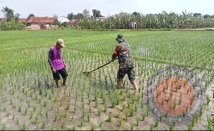 “ Membantu penyiangan gulma tanaman padi merupakan salah satu kegiatan pendampingan dan pengawalan yang rutin kami lakukan terhadap para petani di wilayah desa binaan, “ kata Serma Budi P.