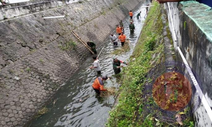 Apel dilanjutkan dengan kegiatan karya bakti yang fokus pada pembersihan aliran sungai dan pembersihan tanaman liar di plengsengan sungai.