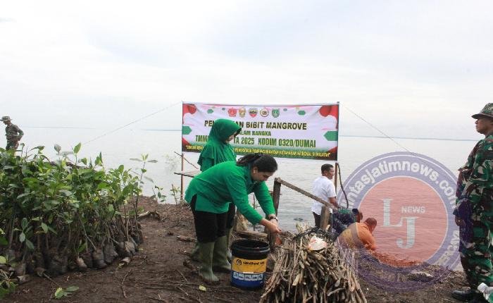DUMAI lintasjatimnews – Semangat gotong royong dan kepedulian terhadap lingkungan terpancar jelas di Pantai Purnama, Dumai, hari ini. Ratusan bibit pohon mangrove ditanam secara serentak dalam sebuah kegiatan yang merupakan bagian dari rangkaian TNI Manunggal Membangun Desa (TMMD) ke-124 yang diselenggarakan oleh Kodim 0320/Dumai.