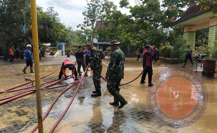 Dipersenjatai alat sederhana serta bantuan mobil pemadam kebakaran untuk menyemprot lumpur, para Babinsa bersama petugas DAMKAR terlihat berjibaku membersihkan halaman dan ruangan sekolah serta balai desa yang masih digenangi lumpur tebal. Sinergi antara aparat TNI dan petugas kebencanaan terlihat begitu solid dalam meringankan dampak bencana.
