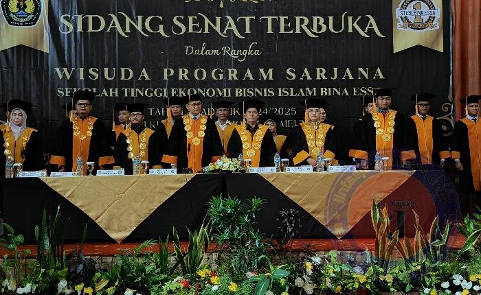 BANDUNG lintasjatimnews – Untuk yang pertama kalinya, Sekolah Tinggi Ekonomi Bisnis Islam (STEBI) Bina Essa Bandung Barat menggelar acara Sidang Senat Terbuka dalam rangka Wisuda Program Sarjana Tahun Akademik 2024-2025 bertempat di Hotel Puri Khatulistiwa Jatinangot Kabupaten Sumedang, Sabtu 24/5.