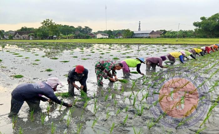 Seperti halnya yang dilakukan Babinsa Koramil 03/Geneng Kodim 0805/Ngawi Sertu Agung Prasetya melaksanakan kegiatan pendampingan dan membantu petani yang sedang menanam padi, Minggu (25/05/2025).