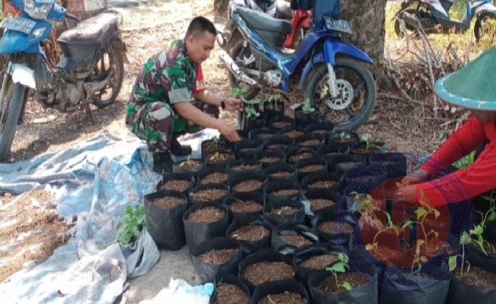 Wujudkan Ketahanan Pangan, Babinsa Koramil Kendal Bantu Petani Semai Bibit Cabai