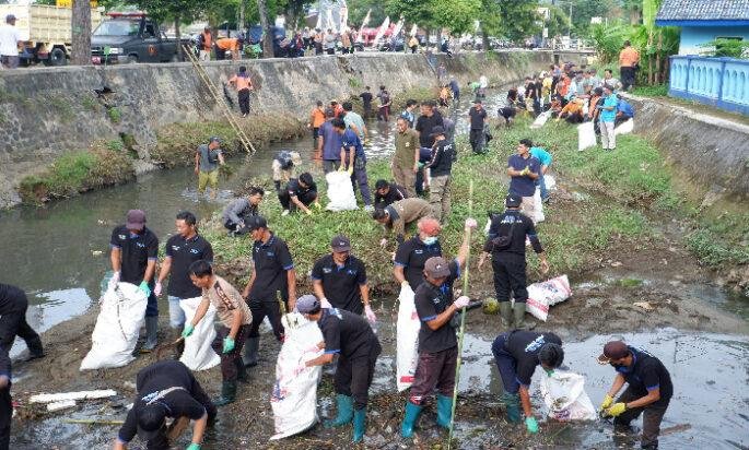 PACITAN lintasjatimnews – Dalam rangka memperingati Hari Lingkungan Hidup Sedunia 2025, Pemerintah Kabupaten Pacitan menggelar kegiatan Aksi Sosial Kerja Bhakti Bersih Sungai dengan tema APIK ( Akhiri Sampah Plastik) dan “Hentikan Populasi Plastik” yang di pusatkan aliran sungai sepanjang Pertigaan JLS (Cuwik) Jln. WR. Supratman Kel. Sidoharjo Kec.Kab. Pacitan, Kamis (5/6/2025).