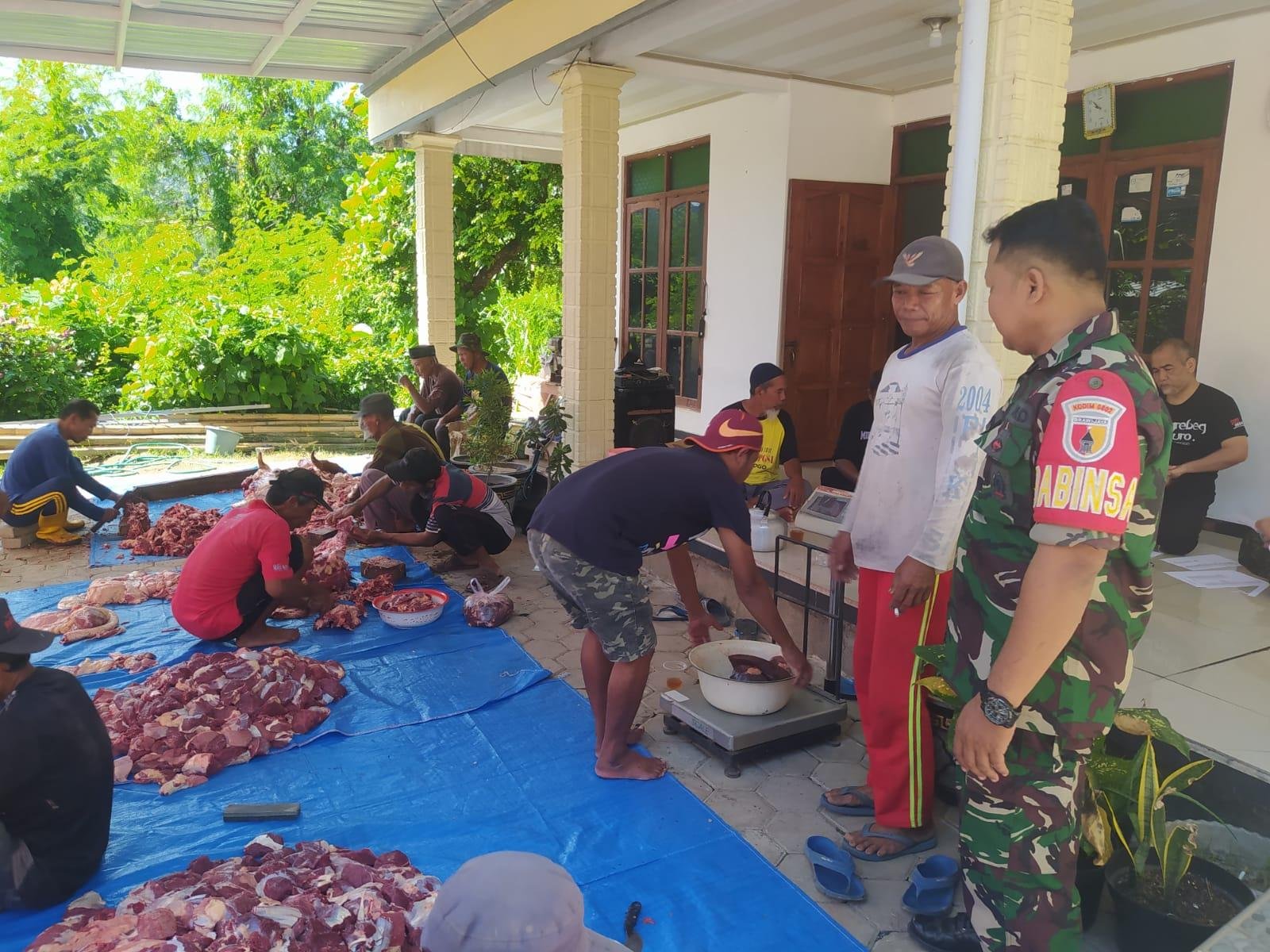 ” Aktivitas warga disaat saat hari Raya Idul Adha seperti ini salah satunya yaitu melakukan kegiatan keagamaan berupa penyembelihan hewan kurban dimana dalam pelaksanaannya kami juga aktif memonitor dan mendampingi warga, ” kata Serka Komari Rudianto.