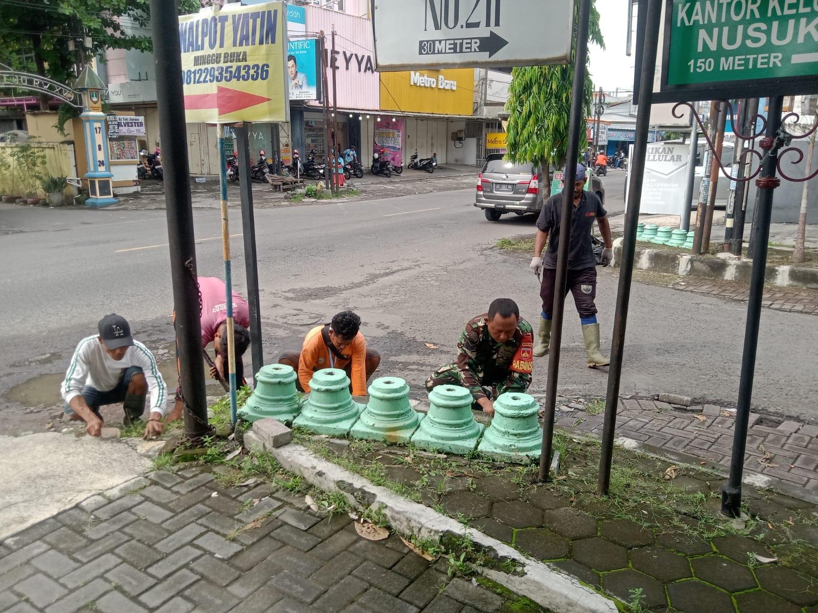 Kodim 0735/Surakarta Serka Supadmo bersama dengan Tim Saberling Kelurahan Nusukan melaksanakan kerja bakti pembersihan lingkungan dan rumput – rumput serta sampah disepanjang Jalan Kapten Piere Tendean Kelurahan Nusukan Kecamatan Banjarsari, Minggu (08/06/2025).