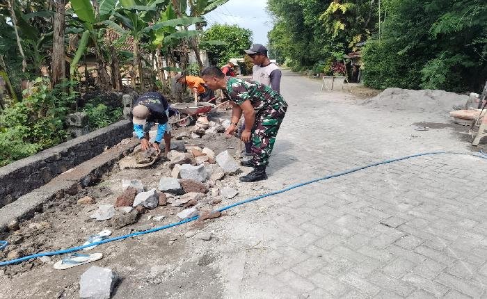 NGAWI lintasjatimnews – Salah satu tugas pokok Aparat teritorial dalam lingkungan masyarakat Desa binaanya adalah melaksanakan Pembinaan Teritorial (Binter) guna mempertebal budaya gotong royong dalam kehidupan bermasyarakat, Anggota Koramil Tipe B 0805/02 Paron Serka Sampurno, Babinsa Desa Gelung bersama warga Dusun Paron Desa Gelung melaksanakan Karya Bakti Pembuatan Talut Jalan di Dusun Paron Desa Gelung Kec. Paron Kab. Ngawi, Senin (09/06/2025).