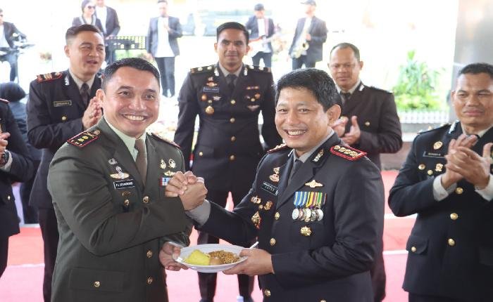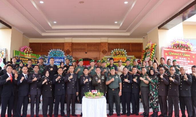 SURAKARTA lintasjatimnews – Dandim 0735/Surakarta Letkol Inf Fictor J. Situmorang S.I.P., M.I.P. didampingi Kasdim Mayor Inf Suwarko, para Pasi, Danramil, serta perwakilan anggota Kodim 0735/Surakarta memberikan ucapan selamat Hari Ulang Tahun (HUT) Bhayangkara ke-79 yang diterima langsung oleh Kapolresta Surakarta Kombes Pol Catur Cahyono Wibowo, S.I.K., M.H. beserta jajaran Polresta Surakarta bertempat di Mapolresta Surakarta Jln. Slamet Riyadi No. 376, Kelurahan Purwosari, Kecamatan Laweyan, Selasa (01/07/2025).