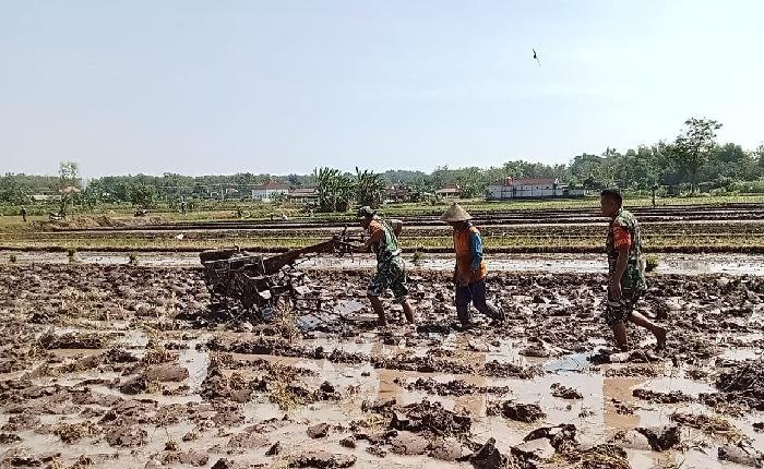 Babinsa Bantu Petani Bajak Sawah dengan Traktor, Tingkatkan Produktivitas Pertanian