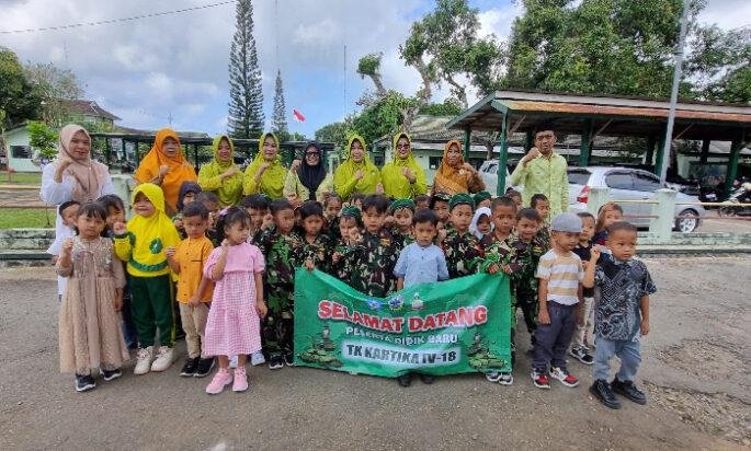 Ny. Ajeng Musahirul didampingi para guru pembimbing sebagai pemateri mengatakan bahwa kegiatan tersebut bertujuan untuk mengenalkan siswa siswi TK Kartika IV-18 di lingkungan serta belajar melatih kekompakan.
